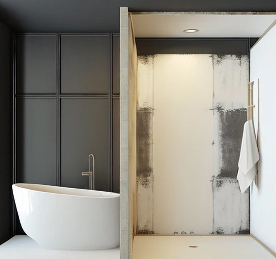 Hinweis für Duschbereiche: Lass die Silikonfugen vor dem ersten Gebrauch der Dusche vollständig trocknen (mindestens 24 Stunden). Achte besonders auf die Stoßkanten zwischen mehreren Duschrückwänden.