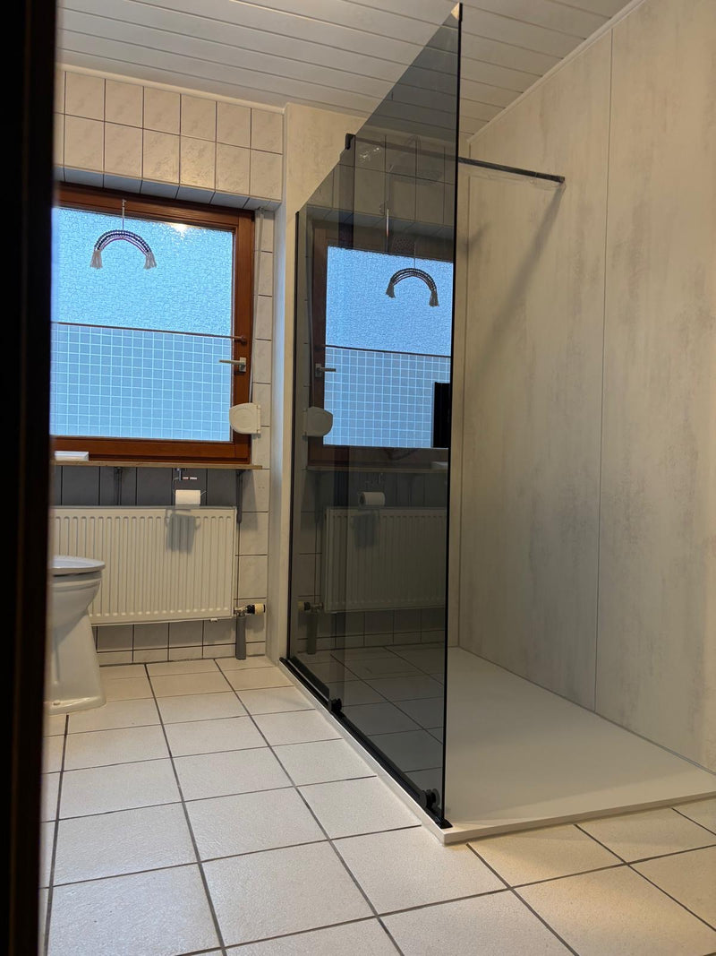 Hinweis für Duschbereiche: Lass die Silikonfugen vor dem ersten Gebrauch der Dusche vollständig trocknen (mindestens 24 Stunden). Achte besonders auf die Stoßkanten zwischen mehreren Duschrückwänden.